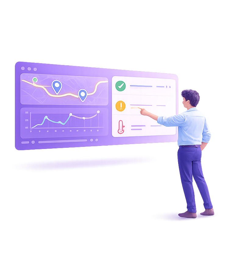 Monitore temperatura de cargas refrigeradas em tempo real, com alertas e histórico — para agir rápido e evitar prejuízos por variações fora da tolerância.